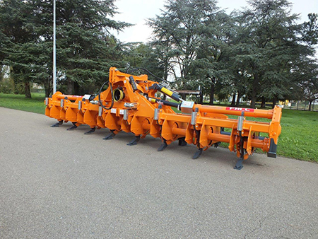 The Strip Till creates strips of worked soil ready for planting. A leading tine breaks the soil surface; this is followed by driven rotavator blades which create a fine tilth to a depth of between 15 and 25cm depending on crop requirements; finally, a segmented roller consolidates the strip ready for planting. Solid or liquid fertiliser can be applied at the same time.