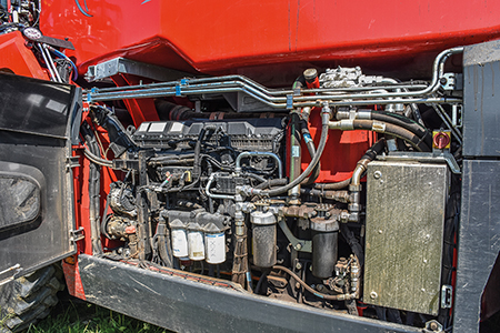 It has a special cooling system that allows it to work at full load in temperatures of up to 45°C. The radiator has been placed at the front of the machine to minimise cooling issues created by dust and crop residue, and it has an auto reverse system to blow out any debris that does find its way into the radiator, and all service items are located on the side of the engine which is easily accessed through the large door.