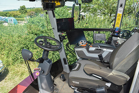 “This means that I can see better to line the wheels up with the crop. I also use the arm itself as a guide, for extra assurance. Elsewhere, the visibility is excellent with a combination of rear cameras, the side mirrors and even looking over your shoulder. We have only put around 200 hours on the machine so far, but generally we are very pleased with it. The cab, with its air con, is excellent. You really can’t beat a Claas cab,” Julian commented.