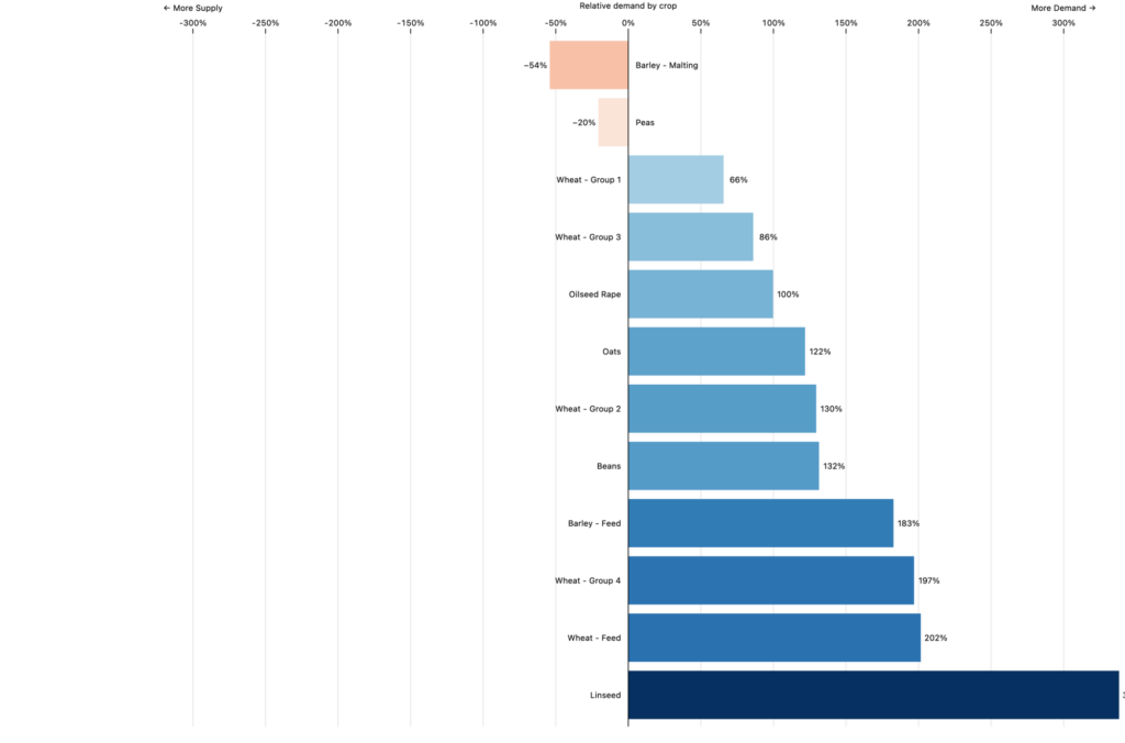 Although the highest demand was for niche crops, demand for linseed outstripped supply by 338%.
